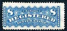 Canada #F3. VG/Fine used example of the dull blue shade of the 1876 issue 8c registration stamp. Very light postmark, which at first glance, makes this appear to be mint. 2025 Scott US$330.00 =
