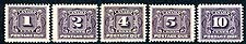 Canada #J1-J5. Fresh and F/VF mint Never Hinged / Lightly Hinged complete set of the first 1906-1928 period Postage Due issues. The first four values are Never Hinged, with the 10c value being Lightly Hinged. 2025 Scott US$390.00 =