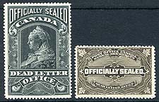 Canada #OX3, OX4. F/VF mint examples of the 1907 and 1913 issue Officially Sealed Stamps. The example of #OX3 is wonderful full original gum, lightly hinged. The example of #OX4 is full original gukm, lightly hinged but with some offset/transfer from another OX4 stamp from being stacked together. 2025 Scott US$300.00 =