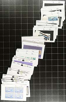 Canada - Used "Varieties", a mix of errors, perforation shifts, tagging shifts and omissions, and a trio of "flyspeck" studies. A very strong start with a scarce example of the used "Missing Bird on Totem" #572ii, a couple of copies of 44c Walrus #1171c, some re-entries, Admiral "hairlines". The flyspeck group are $1 Vancouver, 50c "Street Scene" and $2.00 Banff (the last with a small bundle of documentation!). Some of these are Unitrade listed, most are not. Estimate =