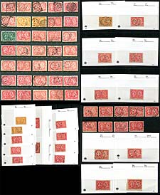 Canada - Mint varieties on a small handful of album and stock pages. Perforation shifts, tagging varieties, papers, plate flaws and some awaiting your research. Lots of eye-catching material here, almost all being mint never hinged. Estimate =