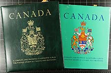Canada - Modern Deluxe Album Duo (with Stamps). Two high quality "as new" Hingeless Canada albums with matching slipcases. The first is a DAVO album (Volume IV) covering the period 2001 to 2006 containing 168 MNH and used stamps and 17 souvenir sheets. The second album is a Stanley Gibbons Volume V (identical to DAVO) covering the period 2007 to 2012, sparsely populated with 7 stamps and 7 souvenir sheets. These albums retail new for over $700.00! Here's your chance to get these popular albums, partially pre-filled with a substantial quantity of material. The other volumes of these albums are readily available from most dealers. Estimate =