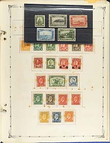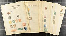 Canada and USA - An old-time collection of (mostly) used, arranged on school-time quadrille pages. The Canadian stamps start in 1859, with the 5c Beaver, followed by a 1/2c Large Queen, Small Queens, 50c Widow Weed, 4x QV Jubilees (including a deep blue shade of the 50c value), Edwards to 10c, complete 1908 Tercentenary (5c, 10c, 15c, 20c mint, with the latter having a face scuff), Admirals, Confederation, Scroll (including 50c Bluenose / $1.00 Parliament), 1935 Pictorial, 1938 Pictorial, 1942 War Issue, 1946 Peace (50c and $1.00 mint) plus some "back of the book" and revenues. The USA portion has a smattering from several better sets including 1893 Columbian, 1898 Trans Mississippi, 1907 Jamestown, Parcel Post etc. Condition is a bit mixed (as usually seen on these older holdings) and stamps are mostly in-place with paper hinges, but still lots of value for someone looking for a "bit of elbow grease" work project. Estimate =