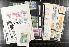 Canada - Mint plate block accumulation #1: The earlier regular issues. Generally, 1940's-1970 commemoratives and definitives, with a mix of single corners and matched sets. From an assortment of former bidboard lots, so there is an uneven mix of issues (including a blend of hinged and never hinged). Includes better such as the 13c "Ram Tank". There might be a few "field stock" corners, but most are inscription or plate number corners. The total catalogue value will be enormous. Estimate =