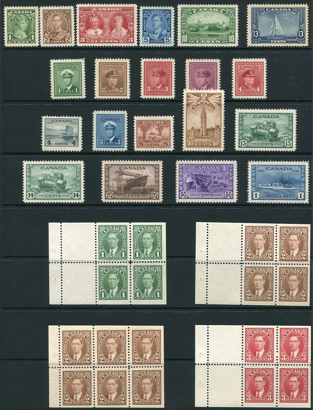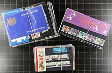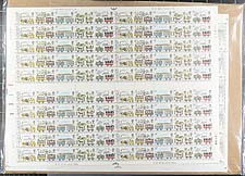 Great Britain #855/918. Four groups of mint sets in Never Hinged complete gutter sheets of 100 (or 50) issued 1979-1980. Sets include Police, Flowers, Christmas, Railways, London ’80 Philatelic Exhibition. Sheets appear to have been unfolded and have strong cardboard backing. Total face value is £199.50.00 in Canadian Dollars =