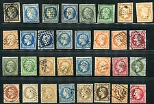 France #3/36. A selection of early, all different, used "Ceres" and "Napoleon III" designs, including a number of shades. Overall condition is average for this period, but the stamps are fresh, and there are lots of identifiable cancels, be they CDS or numeral (both diamond and star grid cancels). 2024 Scott US$652.75 =