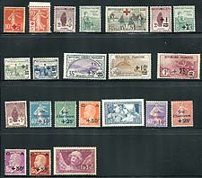 France #B1/B34. Mint early semi-postal selection, including better such as the "Red Cross Hospital Ship", "Industry & Agriculture" and "Smile of Reims". All are hinged, the higher values tend to have minor remnants, the rest with normal hinging. Great appearance. 2024 Scott US$649.85 =