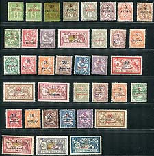 French Morocco #2/54. For thirty years, France overprinted its stamps for use in this North Africa territory. This is a good representation of those issues including the "Peace and Commerce" issue and the later Justice and Freedom designs. These 37 different mint stamps are all hinged, with only a few faults noted. Not easily found. 2024 Scott US$684.60 =