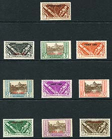 French Polynesia #126-135. Complete mint Lightly Hinged set of the 1941 "France Libre" overprint series on the 1934-1940 Pictorial series. Nice to get the complete set of 10 stamps, seldom offered. 2025 Scott US$378.00 =
