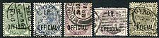Great Britain #O2-O6. The first five denominations of the 1882-1885 Inland Revenue "I.R. Official" overprinted set of 1882-1885. Nice used examples, with four copies having easily readable cancels. An attractive quintet. 2024 Scott US$464.00 =