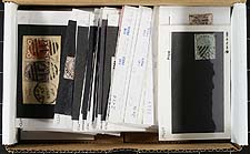 Great Britain - Group of primarily used Great Britain in roughly 100x dealer "102" cards, with material generally ranging from the 1850's to the 1960's. The cards generally contain one stamp per card, noting primarily Victorian and Edward VII issues (several different issues), a few Seahorse, QEII Castles, a few 1960's sets, and some cards identifying various town cancels. Most cards are priced from $3 to $20 each, with a total retail price for the lot at $765. A nice lot which has a potentially high catalogue value, overall fine to very fine. Estimate =