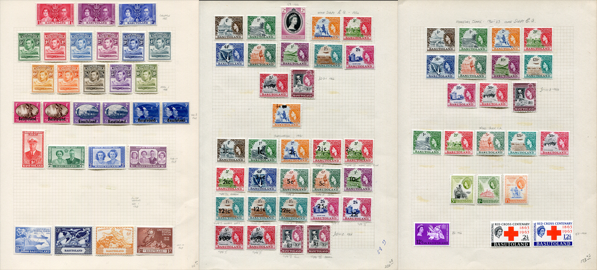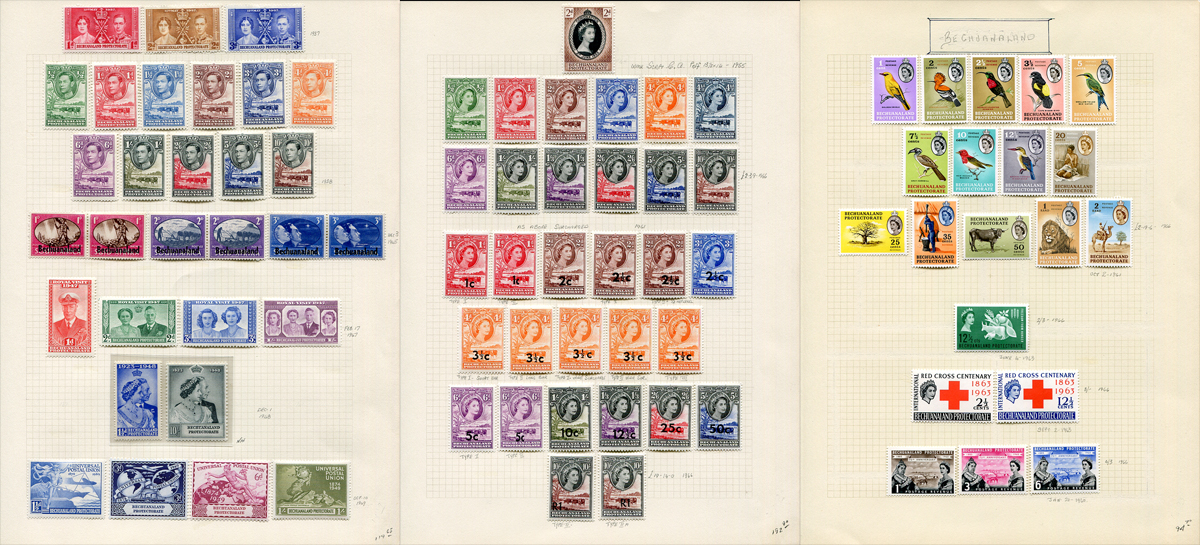 Bechuanaland #121/196. Collection of mint Lightly Hinged on collector's pages from the 1937-1963 George VI / QEII period, including many complete sets and Omnibus issues. 2026 Scott US$407.25 =