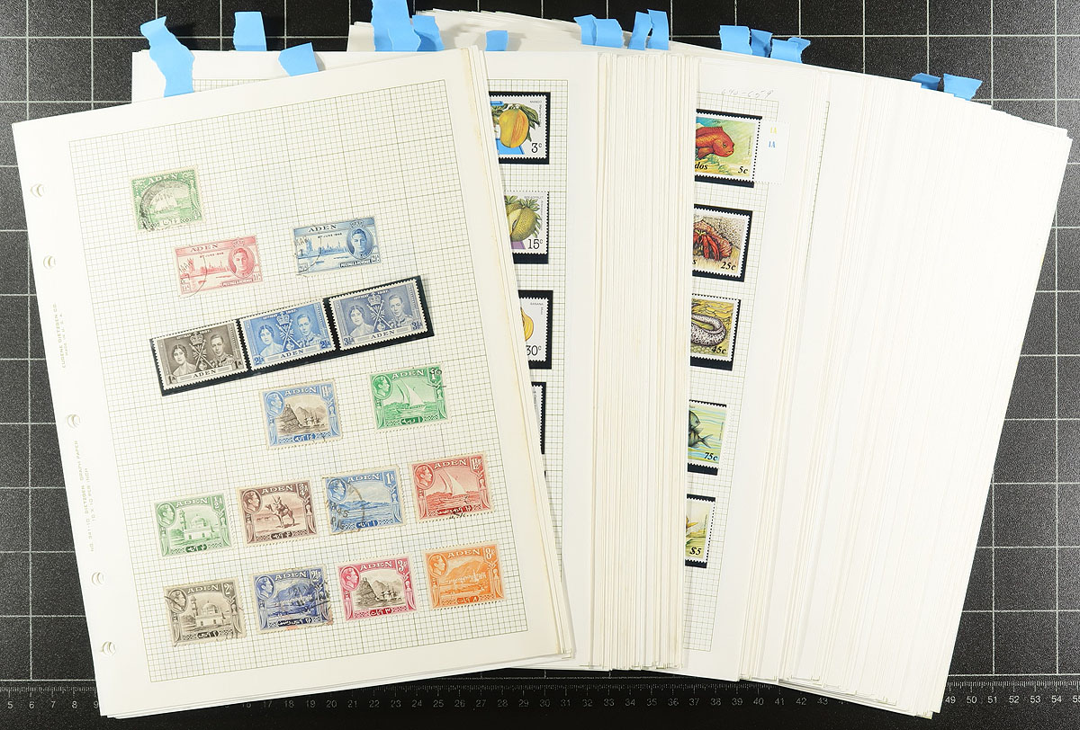 British Commonwealth - Collection (Part 1) of mint and used British Commonwealth, 1880’s-1960’s, containing over 1,000 stamps neatly organized onto several homemade pages. This is the first part of a three part collection, containing countries from A (Aden) to F (Fiji), with roughly 25 different countries represented, including better from Australia, Bahamas, Barbados, Bermuda, British Guiana, Cape of Good Hope, Ceylon, and Fiji, and more. A spot check of material noted several Victorian used issues for many of the countries, partial sets, and a sporadic amount of mint material (mostly early Elizabethan issues), with some material cataloguing $10 to $20 each. A lovely lot for the Commonwealth or worldwide collector, overall fine to very fine. Estimate =