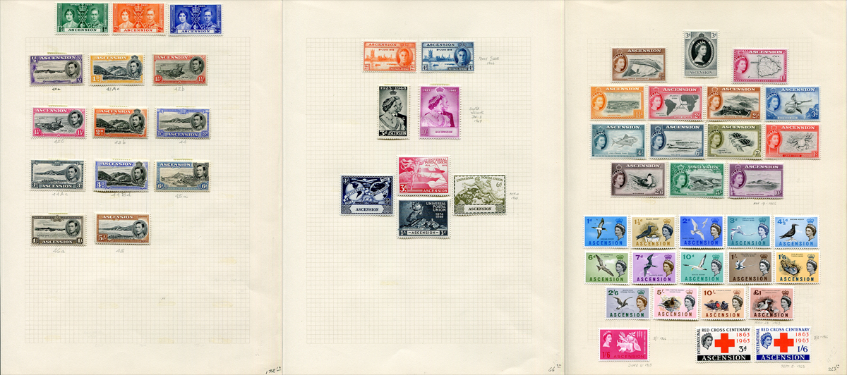 Ascension - Collection of mint Lightly Hinged on collector's pages from the 1937-1963 George VI / QEII period, including many complete sets and Omnibus issues. 2026 Scott US$501.40 =