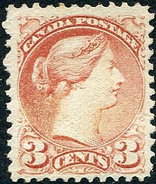 Canada #37e. Fine centered mint hinged (likely regummed) example of the 3c dull red Small Queen, perf 11½ x 12. One of the more elusive 3c varieties. 2026 Scott US$575.00 =