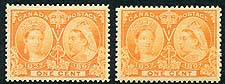 Canada #51, 51i. Duo of VF mint NH examples of the 1897 issue 1c Queen Victoria Jubilee, one in the orange shade, the other in the yellow orange shade. Not listed in Scott, but valued in Unitrade. 2025-2026 Unitrade =