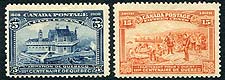 Canada #99, 102. F/VF mint Lightly Hinged duo of mid-value 1908 Tercentenary issues including the 5c blue and 15c red orange. 2026 Scott US$310.00 = $418.50