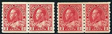 Canada #127, 127i. VF mint Never Hinged duo of 1912 Admiral, perf 8 vertically coil pairs, in both the Unitrade listed carmine and rose carmine shades. 2025-2026 Unitrade = $480.00