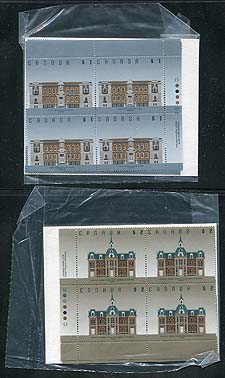 Canada #1375b, 1376c. VF mint Never Hinged matched sets of inscription blocks of both the $1.00 Court House and $2.00 Provincial Normal School, from the Canadian Bank Note Co. printing. Each set of inscription blocks still in original Post Office packaging. 2025-2026 Unitrade = $150.00