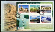 Canada #2844. First Day Cover. Extremely rare duo of private cachet "UNESCO" First Day Covers of the recalled 2015 issue "Wrong Hoodoo" $8.60 souvenir sheet containing one $1.20 "Wrong Hoodoo" stamp (#2844a) and the set of singles from the booklet (#2845-2849). Cancelled with the official "Maple Leaf" illustrated Red Bay, NFLD postmark. Unitrade catalogues the Canada Post FDC for the souvenir sheet alone at $650.00! Estimate = $450.00