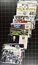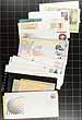 Australia - A shoebox of pre-paid postal "maximum" cards, issued 1991-2002. On the picture side, there is a stamp attached to a matching picture of the stamp and tied with a first day cancel. On the address side, the card could be sent anywhere in the world, and these are all unused. The current mailing value is over A$3.00 each, and there are over 250 different cards here, many in their original packaging. Bonus is a handful of postal stationery (mint and FDC) issued 1978-1988. Estimate =