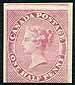 Canada #8. VG/Fine mint/unused example of the 1857 issue QV half-penny rose imperforate on wove paper. Clear / huge margins three sides, but trimmed in on bottom. There are traces of gum, which may be regum, so we have valued this as unused (no gum). A scarce unused issue in any condition. Note the heavily re-entered frameline at top (bottom of stamp above). 2026 Scott Classic US$875.00 =
