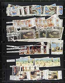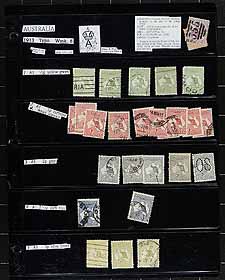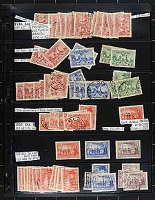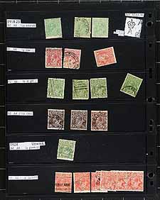Australia - Large collection / accumulation of mint and used Australia, 1913-1987, containing several thousands of stamps in many double sided stock pages housed in a very thick binder. The lot generally ranges from Scott #1/1034, containing singles, sets, and back of the book issues, with most stamps identified by the owner. The lot begins with roughly 140 used Kangaroo issues (including #43-44), and a few hundred KGV Heads, all with a variety of watermark types, along with a few 'OS' perforated issues. The lot continues with a mix of mint and used issues from the 1930s onwards with a probable few hundred dollars worth of face value stamps. A nice lot for the specialist and a potentially high cataloguing lot, as a spot check indicated some stamps cataloguing $10 to $30 and up each. A few faults with a few stamps, overall fine to very fine. Estimate =