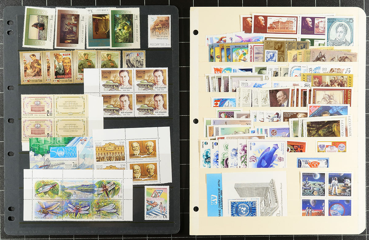 Collection of mint and used Russia, 1900's-2001, containing roughly 1,800 stamps in roughly 17 well organized stock pages, with material possible on either side of the given range. The used material generally ranges from the 1900's to the 1970's (roughly 1,150 stamps), and the mint material ranging from 1911 to 2001 (roughly 650 stamps), noting singles, and many sets, along with back of the book material. A nice lot with many interesting topical and thematic subjects within. Owner's older 2018 Scott US$1,678.00 =