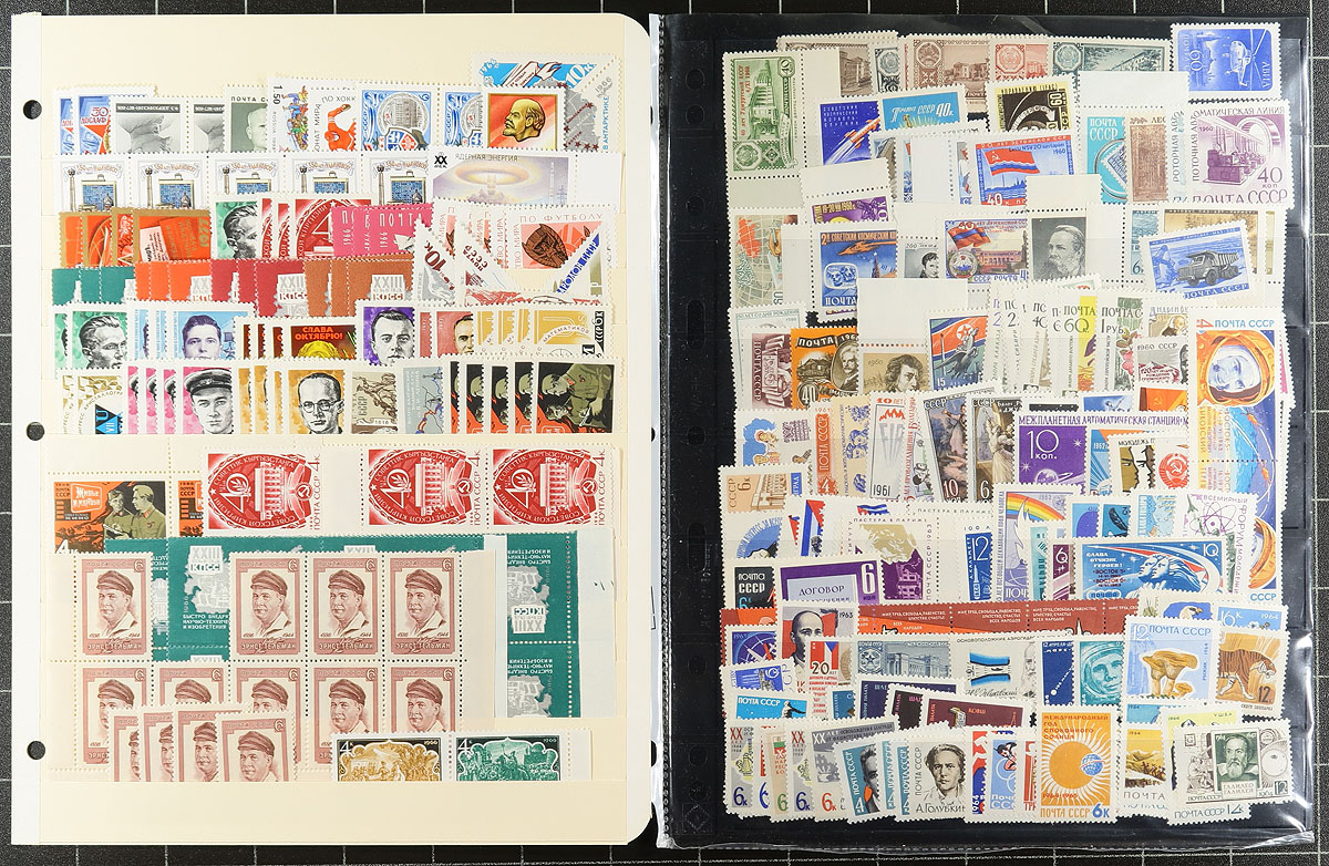 Collection of mint and used Russia, 1900's-2001, containing roughly 1,800 stamps in roughly 17 well organized stock pages, with material possible on either side of the given range. The used material generally ranges from the 1900's to the 1970's (roughly 1,150 stamps), and the mint material ranging from 1911 to 2001 (roughly 650 stamps), noting singles, and many sets, along with back of the book material. A nice lot with many interesting topical and thematic subjects within. Owner's older 2018 Scott US$1,678.00 =