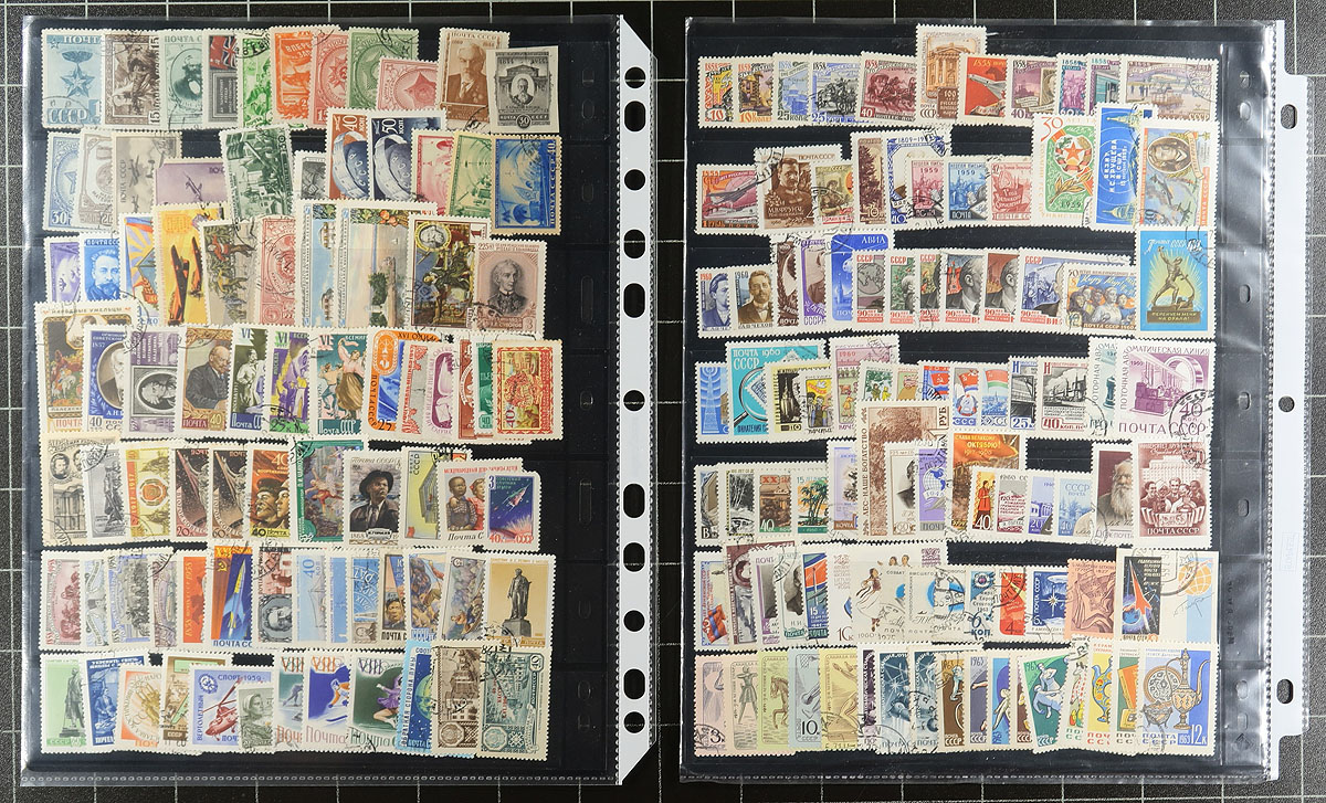 Collection of mint and used Russia, 1900's-2001, containing roughly 1,800 stamps in roughly 17 well organized stock pages, with material possible on either side of the given range. The used material generally ranges from the 1900's to the 1970's (roughly 1,150 stamps), and the mint material ranging from 1911 to 2001 (roughly 650 stamps), noting singles, and many sets, along with back of the book material. A nice lot with many interesting topical and thematic subjects within. Owner's older 2018 Scott US$1,678.00 =