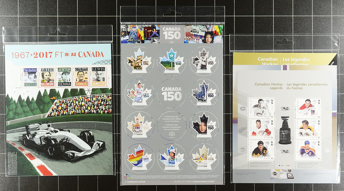 Modern Post Office Packs. A colourful assortment of 21 Post Office modern packs (19 different), including Maple Leaf $5.00 Jersey (x2), Star Trek $10.00 Lenticular souvenir sheet (x2), Canadians in Flight FDC pack, Star Trek (two different panes, plus a prestige booklet), Armistice, Flight in Canada, Bears, Emergency Responders and Group of Seven (plus more). These can prove tough to find in the secondary philatelic market. Counted for the face value alone, of which the catalogue value is usually about double! Total face value =