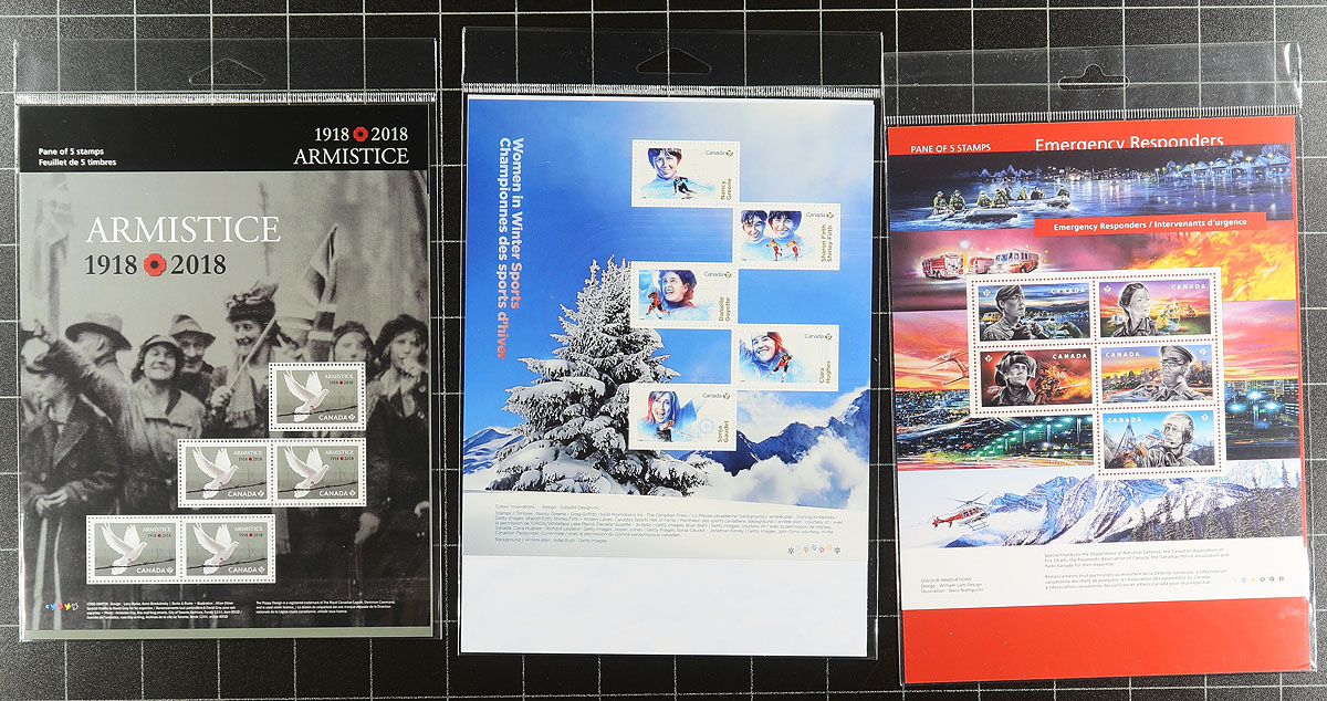 Modern Post Office Packs. A colourful assortment of 21 Post Office modern packs (19 different), including Maple Leaf $5.00 Jersey (x2), Star Trek $10.00 Lenticular souvenir sheet (x2), Canadians in Flight FDC pack, Star Trek (two different panes, plus a prestige booklet), Armistice, Flight in Canada, Bears, Emergency Responders and Group of Seven (plus more). These can prove tough to find in the secondary philatelic market. Counted for the face value alone, of which the catalogue value is usually about double! Total face value =