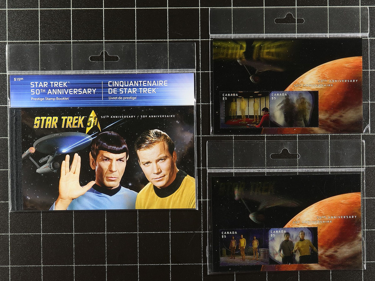 Modern Post Office Packs. A colourful assortment of 21 Post Office modern packs (19 different), including Maple Leaf $5.00 Jersey (x2), Star Trek $10.00 Lenticular souvenir sheet (x2), Canadians in Flight FDC pack, Star Trek (two different panes, plus a prestige booklet), Armistice, Flight in Canada, Bears, Emergency Responders and Group of Seven (plus more). These can prove tough to find in the secondary philatelic market. Counted for the face value alone, of which the catalogue value is usually about double! Total face value =
