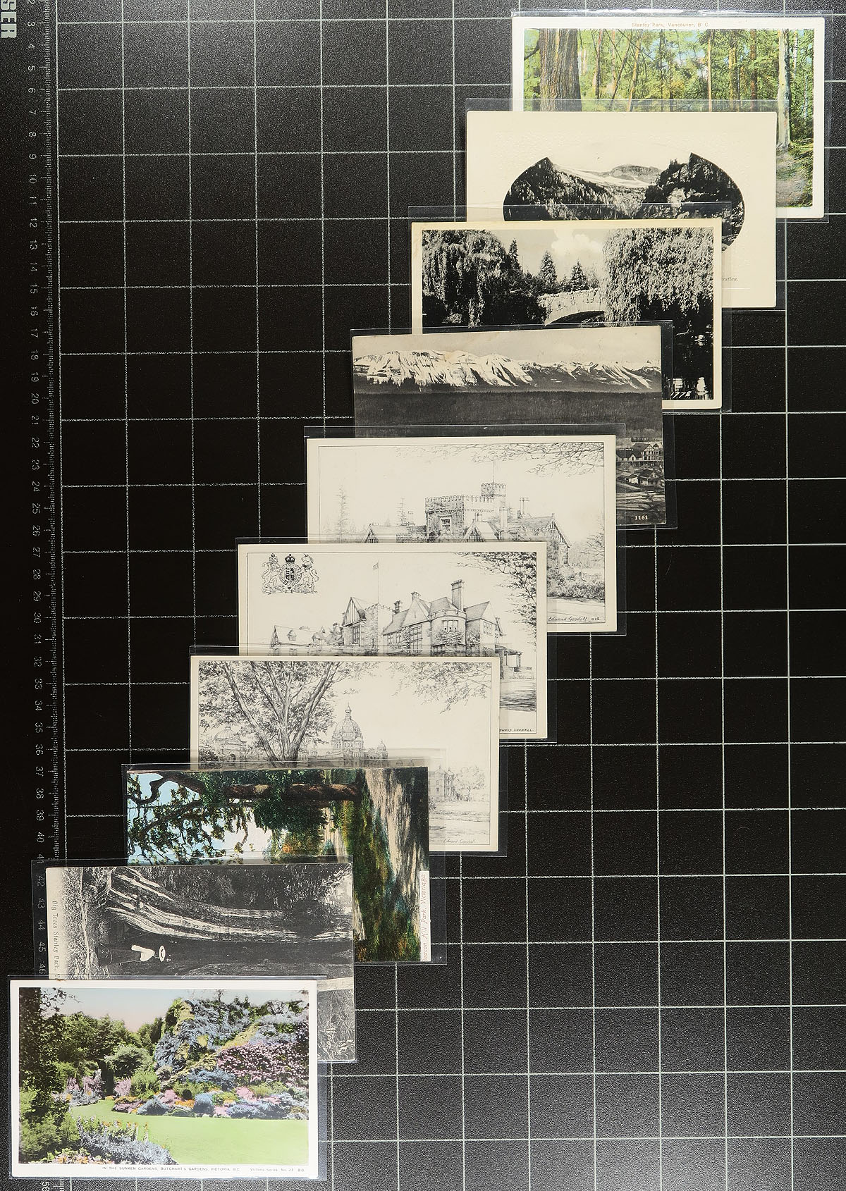 British Columbia Postcards. A "handful" of 125 British Columbia postcards, used / unused and including RPPC (Real Photo Postcards), Printed, Linen and Chromes, with the majority being pre-1940. Primarily Victoria / Vancouver, but also noted a few "others" including Field, Prince Rupert, New Westminster, Kicking Horse Canyon etc. A visual trip back in time, well worth the estimate of less than $1.00 per postcard. Estimate =