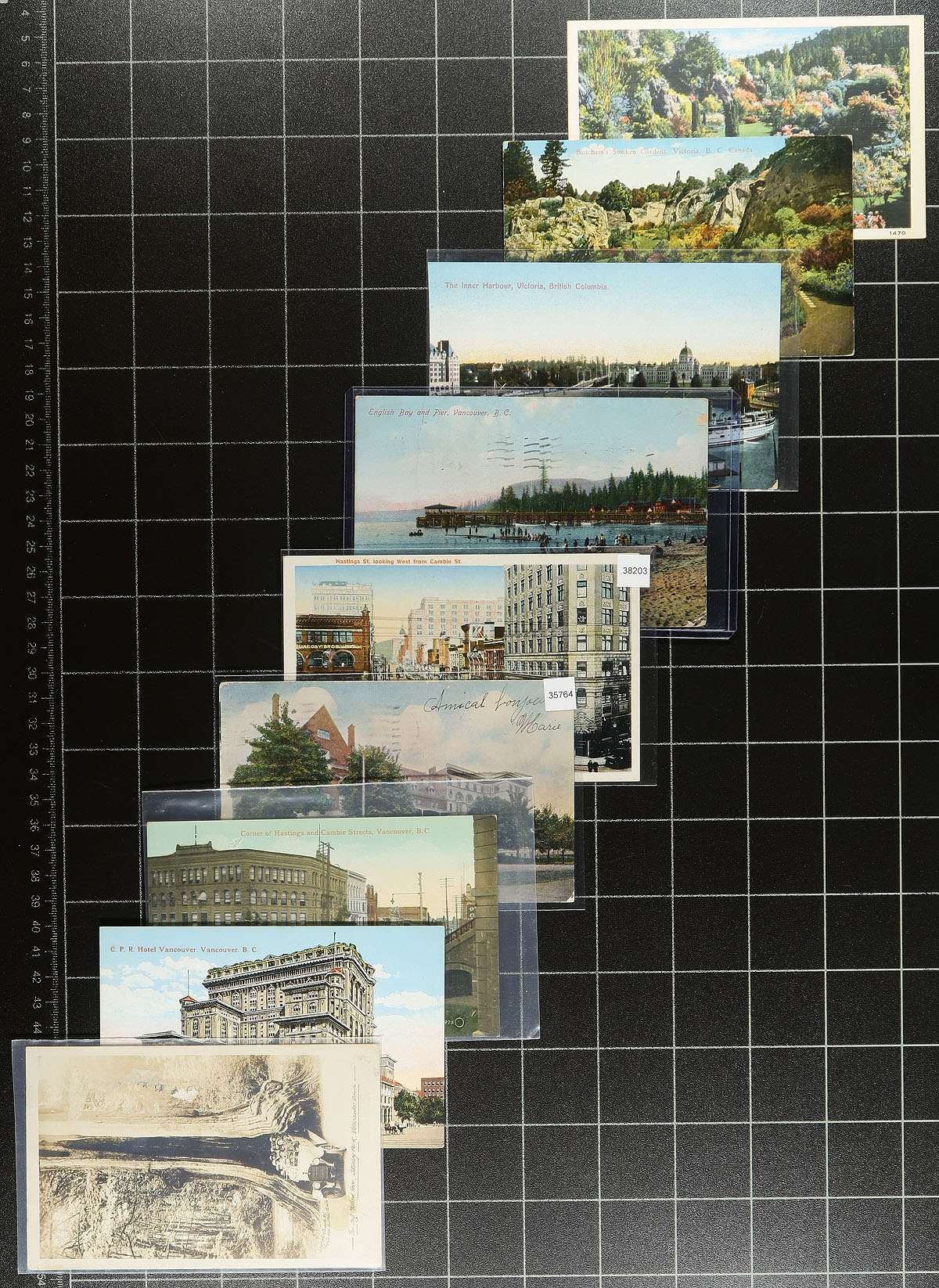 British Columbia Postcards. A "handful" of 125 British Columbia postcards, used / unused and including RPPC (Real Photo Postcards), Printed, Linen and Chromes, with the majority being pre-1940. Primarily Victoria / Vancouver, but also noted a few "others" including Field, Prince Rupert, New Westminster, Kicking Horse Canyon etc. A visual trip back in time, well worth the estimate of less than $1.00 per postcard. Estimate =