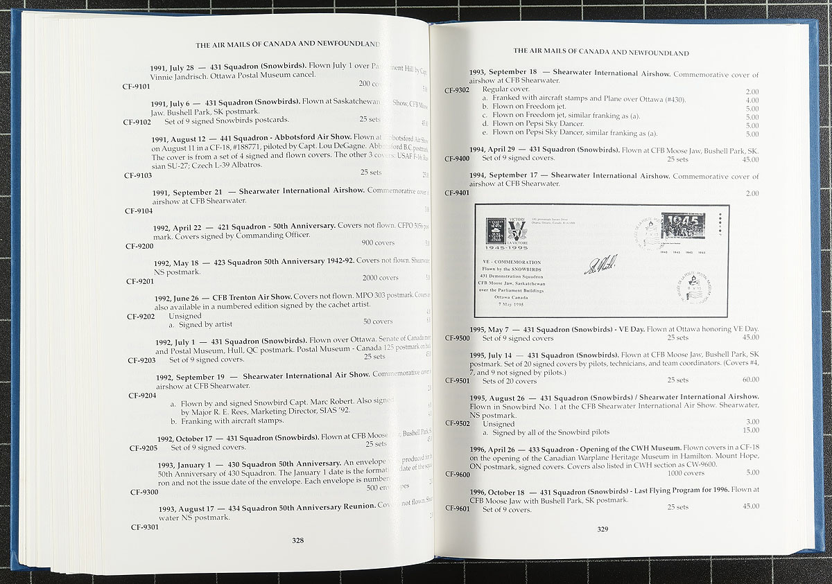 The Air Mails of Canada and Newfoundland. Duo of both the 2022 issued 7th Edition (most current) and 1997 issued 6th Edition (previous edition) of the invaluable Air Mails of Canada and Newfoundland catalogues. Both hardcover, with 635 pages and 546 pages (respectively). A wealth of information here, with not only valuations on First Flight Covers, but also information the details of the flights, routes, pilots etc. Estimate =