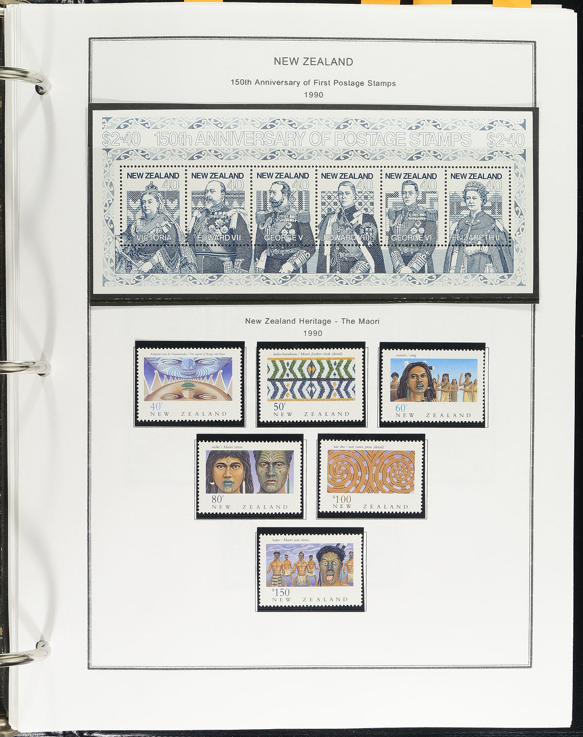 Nice collection of mint and used New Zealand, 1874-1995, containing over 1,000 stamps in black hingeless mounts on roughly 100 album pages. The collection ranges from Scott #51/13198, containing singles, sets and partial sets, souvenir sheets and a few booklet panes, with used material up to the mid 1970's, with mint material afterwards (virtually complete after 1980). We note some material cataloguing in the $5 to $15 range and up, with owner's Face value alone totals NZ$528.00 (we only counted the 1977 to 1995 period). A lovely collection with a variety of purposes for all collectors. Owner's older 2013 Scott US$2,212.00 =