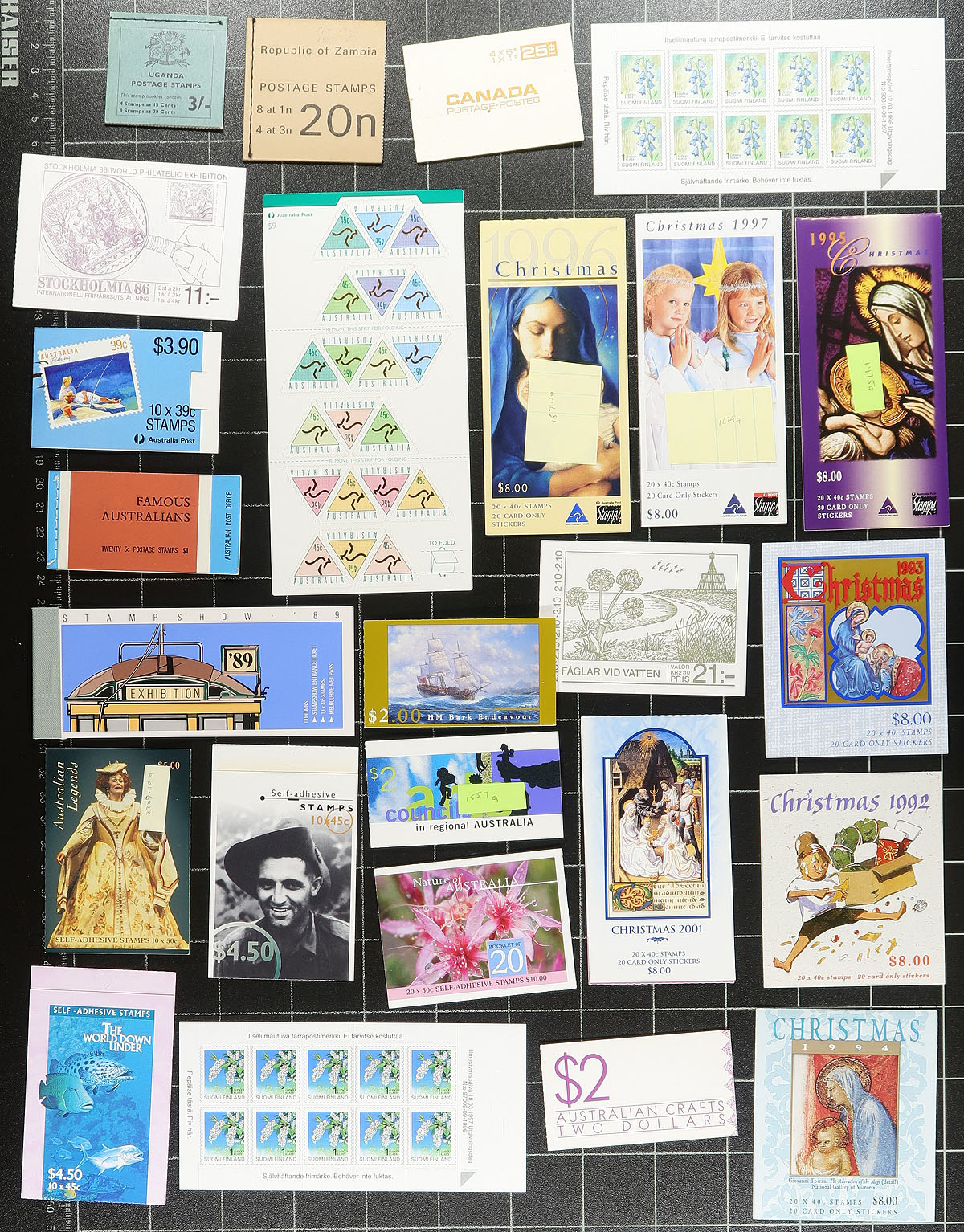 Accumulation of roughly 175 worldwide booklets, 1970's-2000's, with a British Commonwealth and Scandinavia flavour, noting better representation from Australia, Sweden, Greenland, Netherlands, and more, and includes a few prestige booklets. A nice lot for the booklet, topical and thematic collector, noting Christmas and suitable subjects. Should be well worth our under $1 a booklet estimate. Estimate =