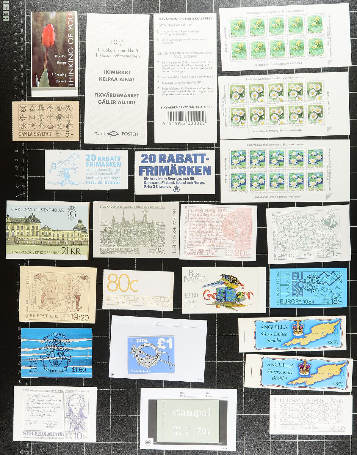 Accumulation of roughly 175 worldwide booklets, 1970's-2000's, with a British Commonwealth and Scandinavia flavour, noting better representation from Australia, Sweden, Greenland, Netherlands, and more, and includes a few prestige booklets. A nice lot for the booklet, topical and thematic collector, noting Christmas and suitable subjects. Should be well worth our under $1 a booklet estimate. Estimate =