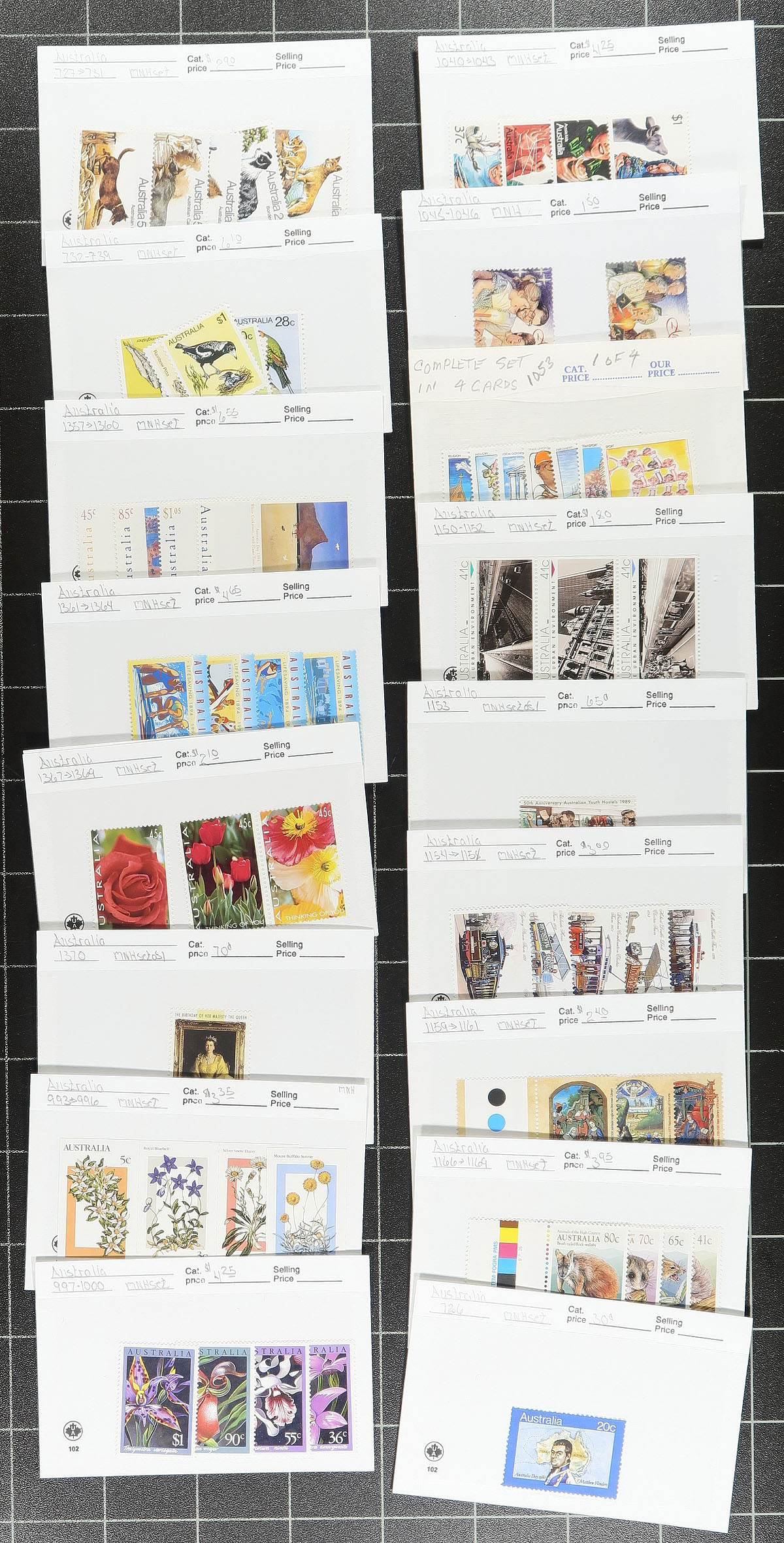 Mint Never Hinged selection of 1980 to 1996 period issues, mostly complete sets, all sorted and priced on #102 dealer cards with a total retail of $546.00. The retail price seems to average out to around double face value. Estimate =
