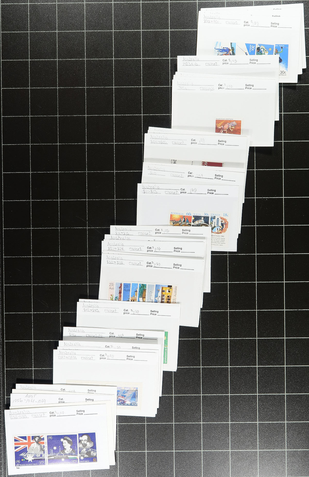 Mint Never Hinged selection of 1980 to 1996 period issues, mostly complete sets, all sorted and priced on #102 dealer cards with a total retail of $546.00. The retail price seems to average out to around double face value. Estimate =