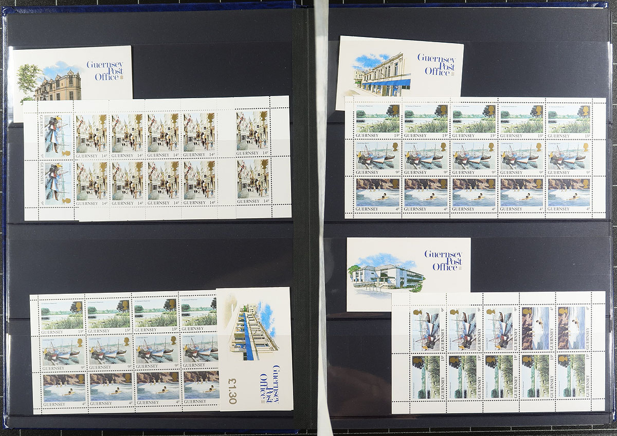 Mint Never Hinged selection of 1971-2010 period issues, almost all booklets and booklet panes. The bulk of the value is in Guernsey but the Alderney portion catalogues US$103.70. A useful selection of these popular Channel Islands issues. All neatly laid out in a nice black page Unisafe stockbook with padded cover. Owner's older 2014 Scott US$798.45 =