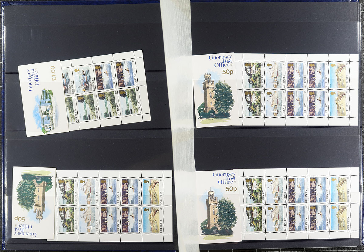 Mint Never Hinged selection of 1971-2010 period issues, almost all booklets and booklet panes. The bulk of the value is in Guernsey but the Alderney portion catalogues US$103.70. A useful selection of these popular Channel Islands issues. All neatly laid out in a nice black page Unisafe stockbook with padded cover. Owner's older 2014 Scott US$798.45 =