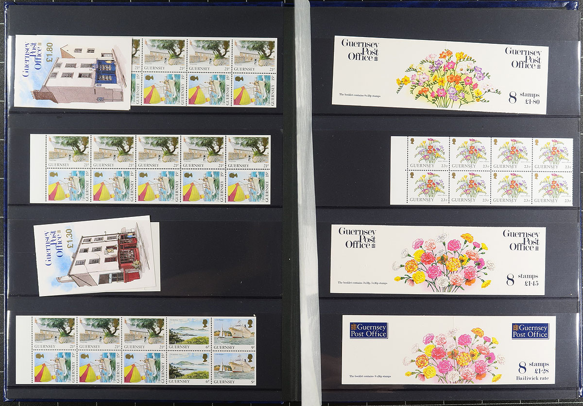 Mint Never Hinged selection of 1971-2010 period issues, almost all booklets and booklet panes. The bulk of the value is in Guernsey but the Alderney portion catalogues US$103.70. A useful selection of these popular Channel Islands issues. All neatly laid out in a nice black page Unisafe stockbook with padded cover. Owner's older 2014 Scott US$798.45 =