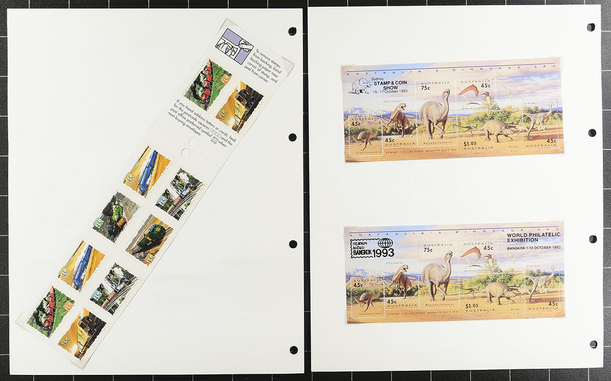 Comprehensive mint Never Hinged collection of mostly 1991-1995 period issues on hingeless Stanley Gibbons pages in burgundy album. Includes almost all the better die cut self-adhesives, overprinted souvenir sheets, se-tenant strips and blocks. Worth full face at least. Catalogue value will be quite high. Face value AUD $247.91 =