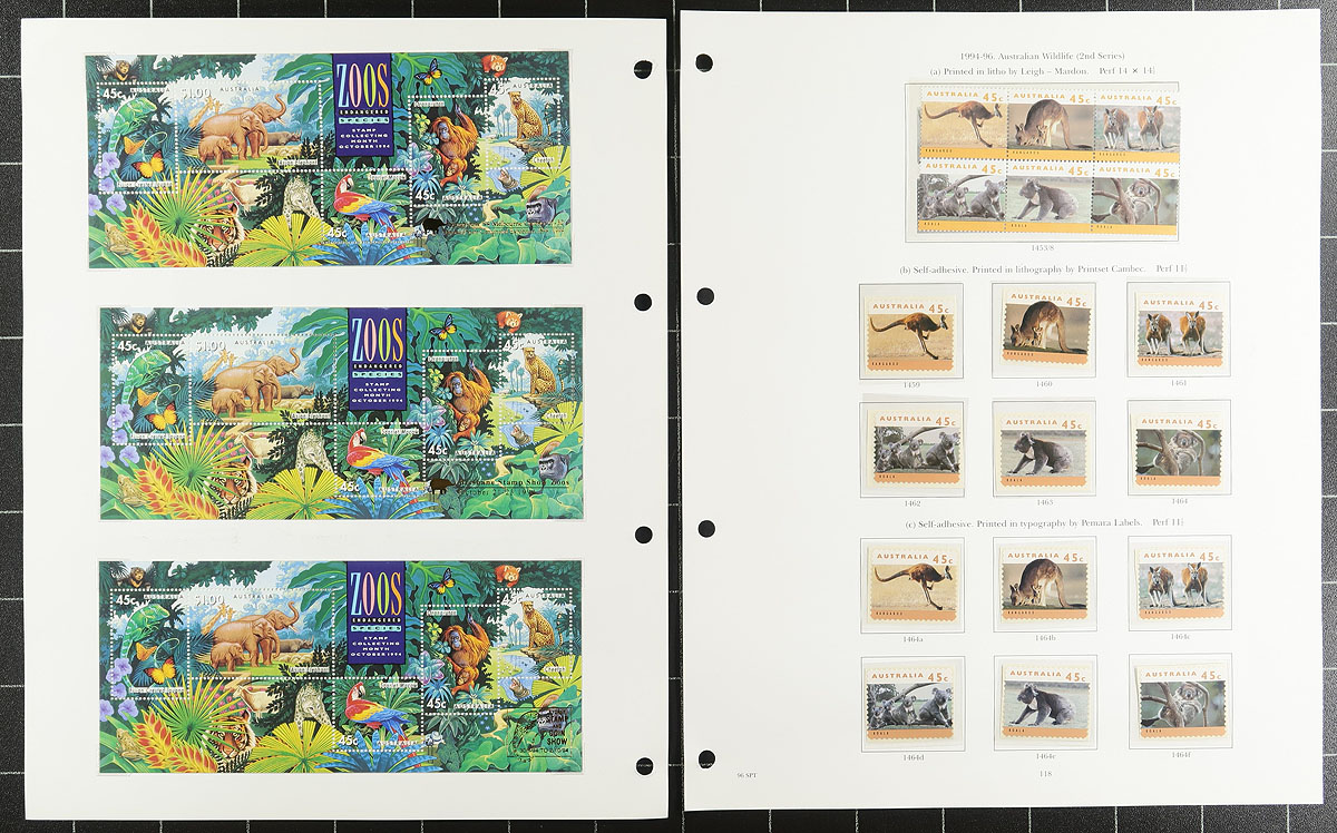 Comprehensive mint Never Hinged collection of mostly 1991-1995 period issues on hingeless Stanley Gibbons pages in burgundy album. Includes almost all the better die cut self-adhesives, overprinted souvenir sheets, se-tenant strips and blocks. Worth full face at least. Catalogue value will be quite high. Face value AUD $247.91 =