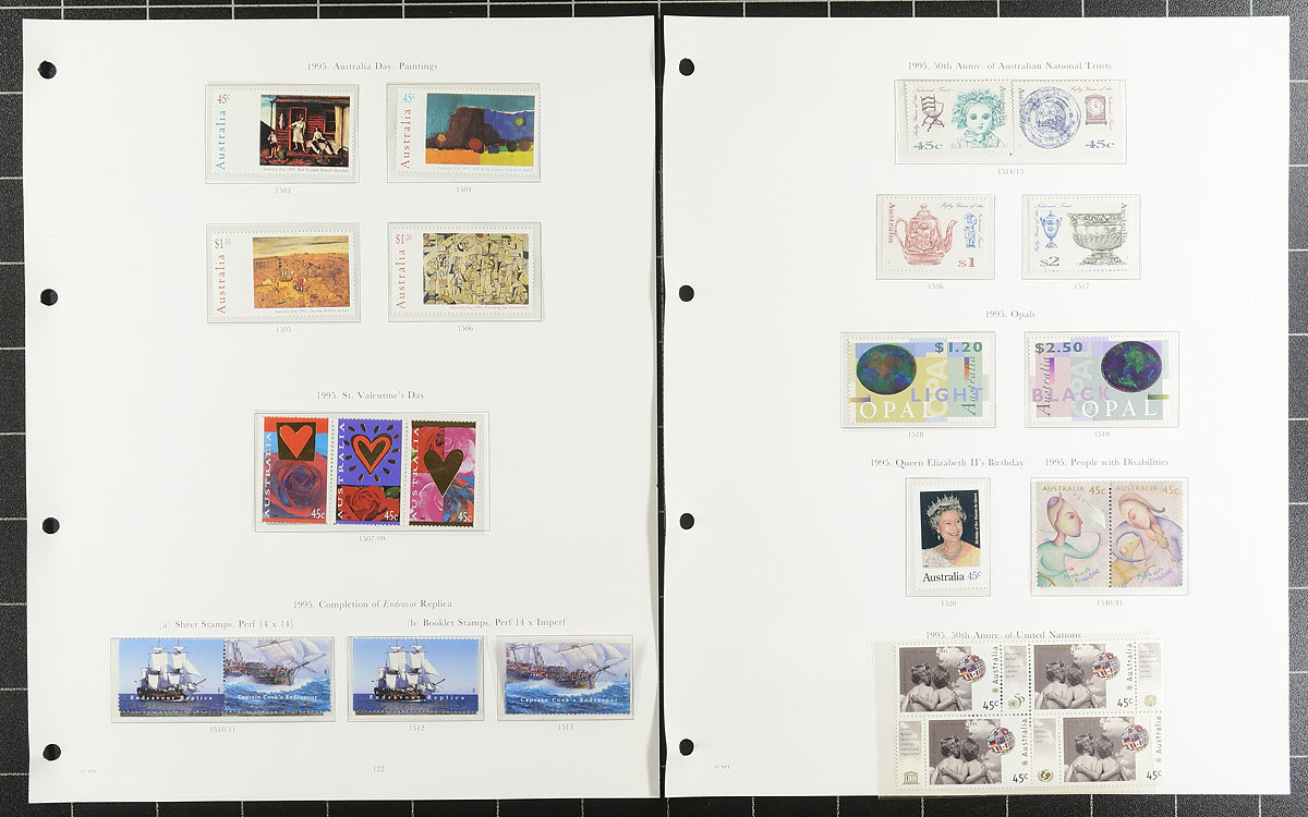 Comprehensive mint Never Hinged collection of mostly 1991-1995 period issues on hingeless Stanley Gibbons pages in burgundy album. Includes almost all the better die cut self-adhesives, overprinted souvenir sheets, se-tenant strips and blocks. Worth full face at least. Catalogue value will be quite high. Face value AUD $247.91 =