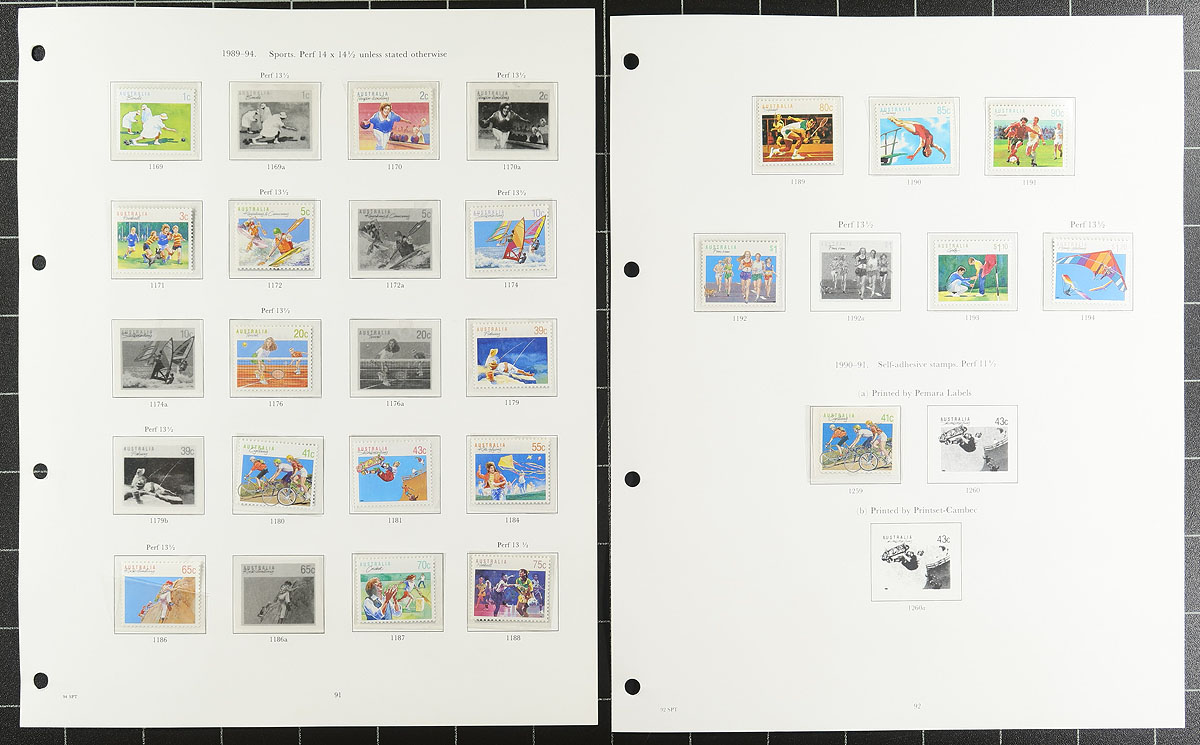Comprehensive mint Never Hinged collection of mostly 1991-1995 period issues on hingeless Stanley Gibbons pages in burgundy album. Includes almost all the better die cut self-adhesives, overprinted souvenir sheets, se-tenant strips and blocks. Worth full face at least. Catalogue value will be quite high. Face value AUD $247.91 =