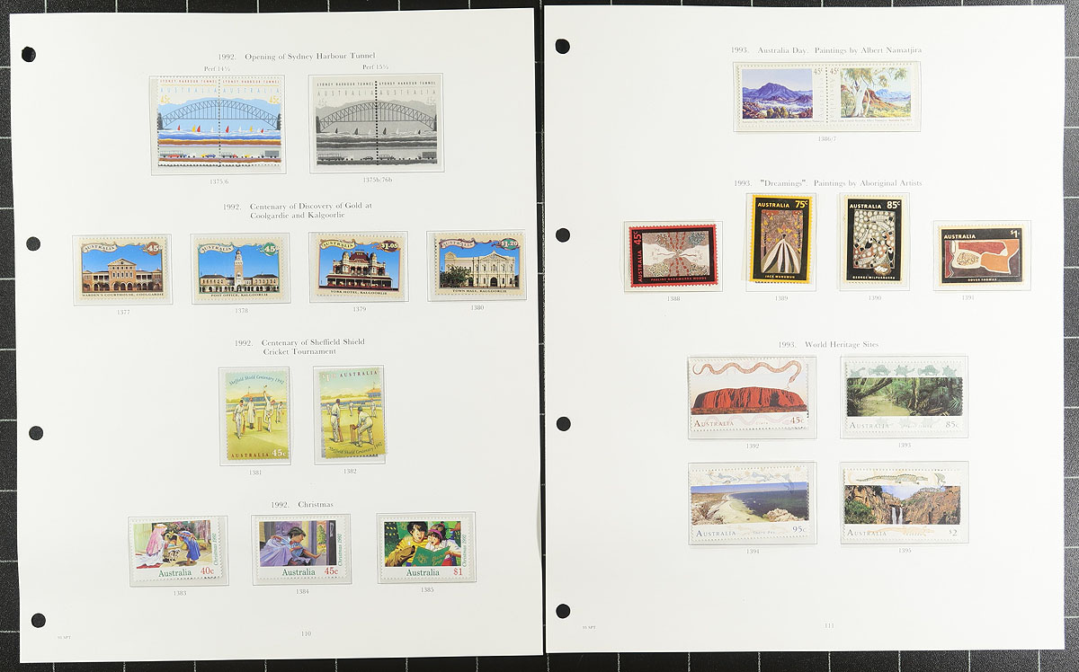 Comprehensive mint Never Hinged collection of mostly 1991-1995 period issues on hingeless Stanley Gibbons pages in burgundy album. Includes almost all the better die cut self-adhesives, overprinted souvenir sheets, se-tenant strips and blocks. Worth full face at least. Catalogue value will be quite high. Face value AUD $247.91 =