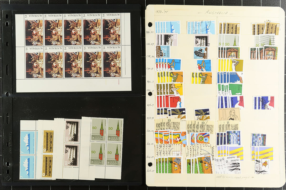 Neatly organized, high quality duplicated mint and used stock of 2,867 stamps, 11 souvenir sheets and 4 booklet panes, 1965 to 1979 decimal currency period issues. The total face value of the useable mint postage is $453.87 AUD = $408.07 CDN. A very balanced lot. Owner's older 2014 Scott US$2,038.50 =